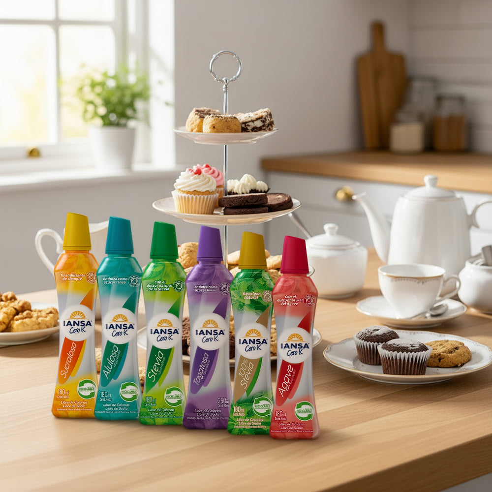 Con Iansa Cero K puedes endulzar tus momentos sin culpas. Tenemos stevia, sucralosa, alulosa y otras opciones para tu café, té, batidos o preparaciones. Sabor rico, cero calorías y formatos para todas tus necesidades.